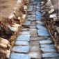 Sur cette partie, le canal diffère du reste de la construction générale. Pas d'enduit d'étanchéité, mais le fond garni des plaques de gneiss bleu-vert et les côtés maçonnés pour l'encastrement des poutres. Faute de moyens pour la sauvegarde des fouilles, le chantier a été recouvert.